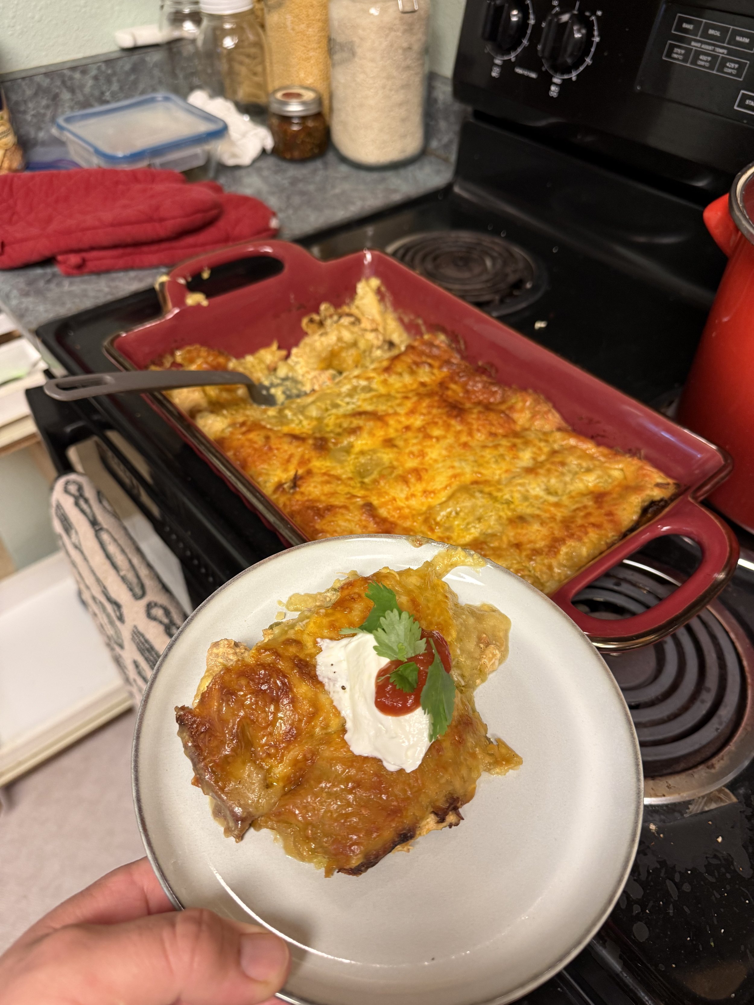 Last night I found myself craving my sister’s Enchiladas Suizas. The kind of craving that shows up fully formed and refuses to be ignored.