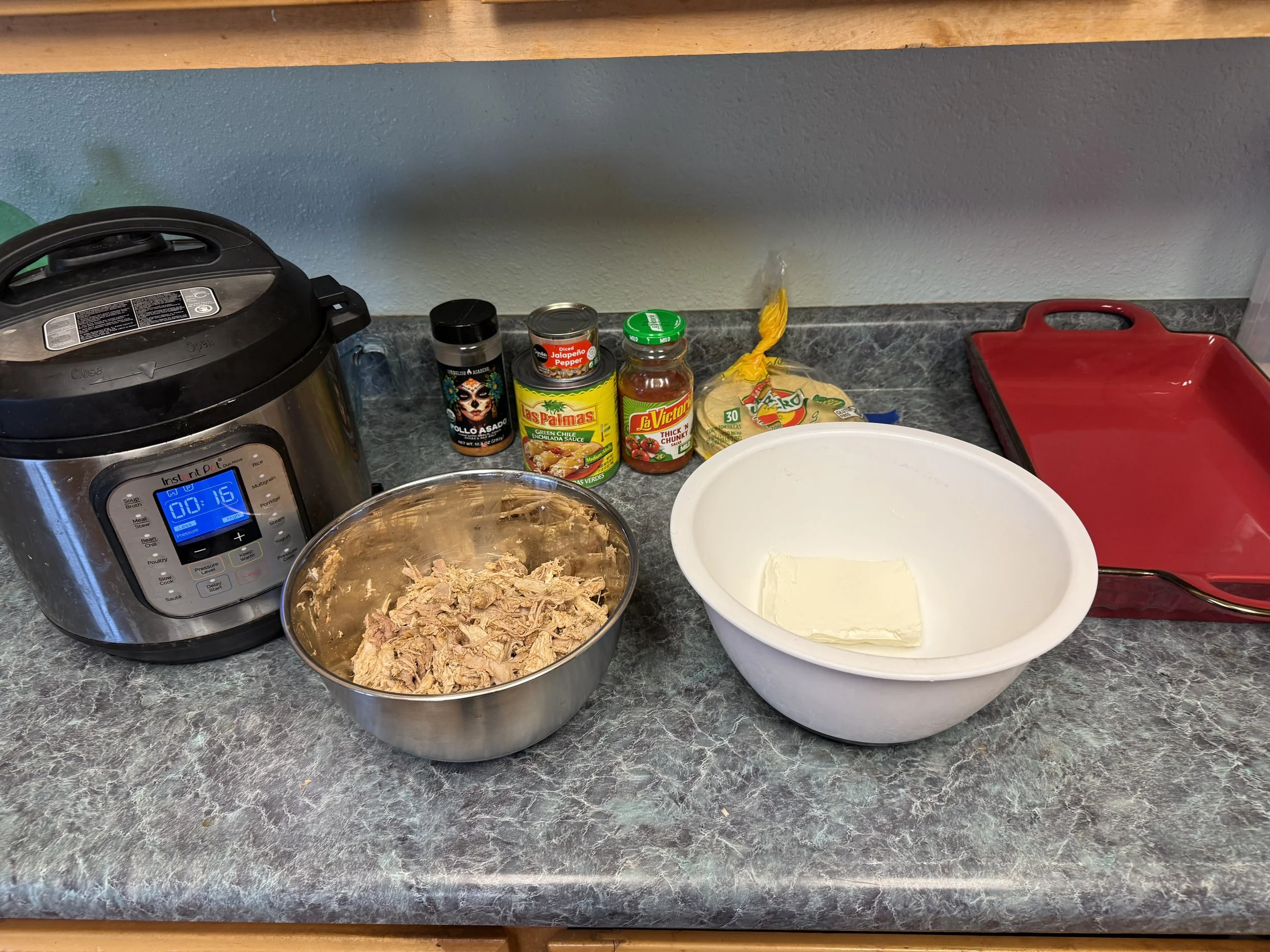 She picked up her version of the recipe during her gap year, when she lived with American missionaries in Madrid. Her host mom was one of those cooks who just got it, shaped by years living in Guatemala, the U.S., and Spain. The enchiladas were rich and comforting, built around cream cheese, evaporated milk, and pimentos. When I was a teenager, this was the meal she’d make when she came home from college. Later on, she started using meat from a Costco rotisserie chicken, which made the dish noticeably saltier and heavier than I remembered.