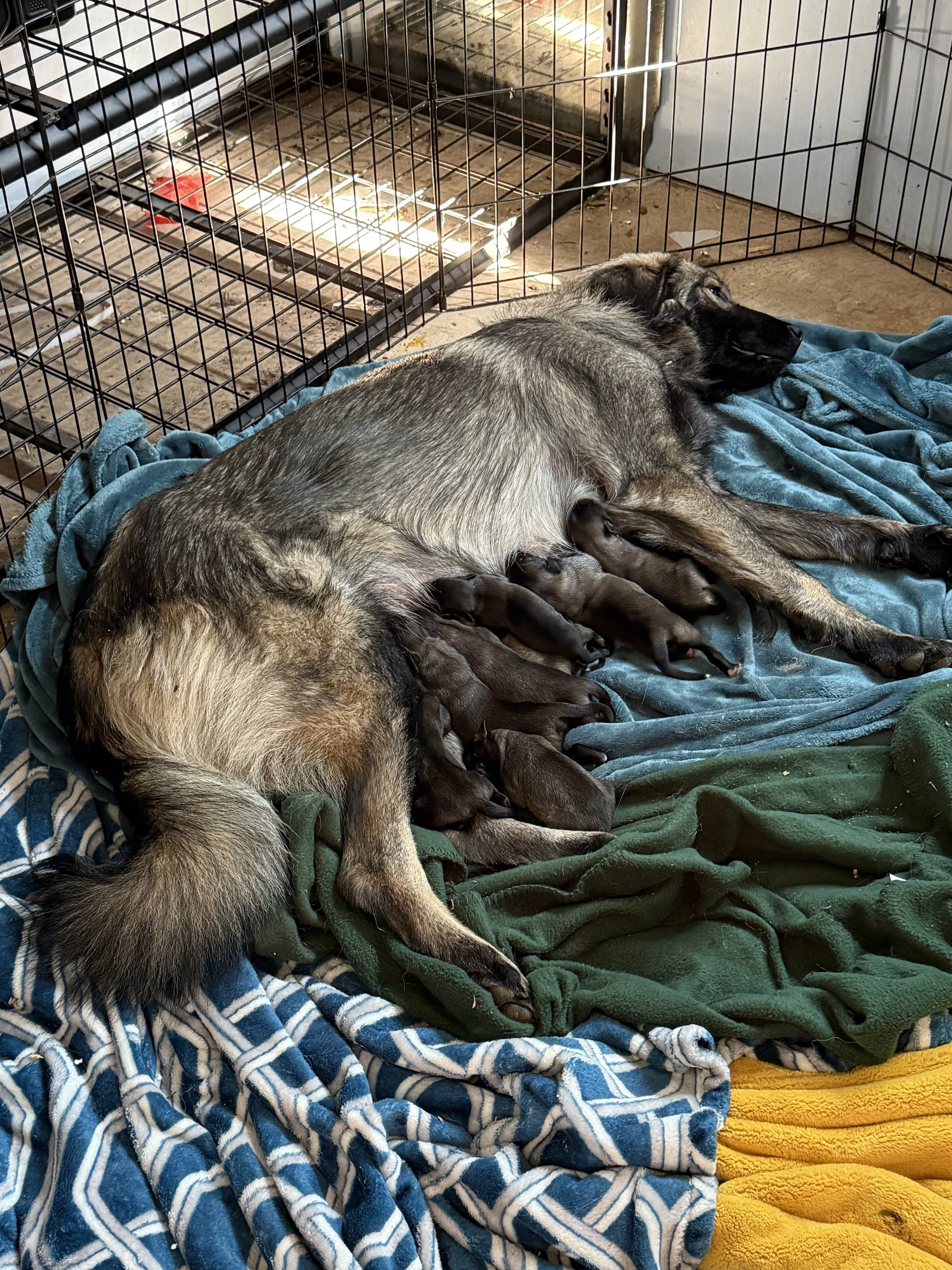 A few days ago, though, I noticed something wasn’t right. Olga’s energy was low. She refused to nurse her puppies, and her normally sharp, alert eyes had lost their spark. A quick check and a call to the vet confirmed it: mastitis.